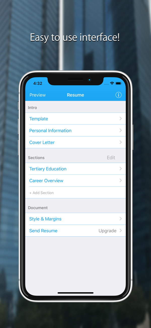 وقامت بتقديم هذا البرنامج لإنشاء السيرة الذاتية على أجهزة iPhone و iPad . ويوفر البرنامج مجموعة واسعة من القوالب الجاهزة التي يمكن تخصيصها بسهولة لتلبية احتياجاتك. كما يتضمن البرنامج أدوات تحرير قوية لإضافة أو تعديل المعلومات بسهولة.